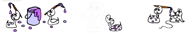 Seit dem ersten Bild auf dem Dilbert Kalender 1999 sind die Croctales erst auf Notizblöcke und dann in wunderschöne (Tage-) Bücher umgezogen. Die meisten der Bilder reflektieren den Alltag, Dinge die um uns herum passieren, oder auch lustige Wortspiele.