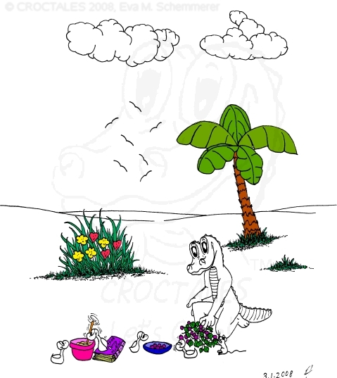 CROCTALES - Let's Croc! Your South-Florida comic for the young and the young at heart. Starring: CROC the alligator, four little orphan ducks and the Cookie-Mouse, of course with lots of guests and visitors; snowbirds included. With CROC philosophy & advice including our own version of online banking and daylight saving, our personal donut & diet site, a new learning site for kids and a new book "ABC learn the CROCTALES alphabet", our EconCOMICAL task force, the LITTLE GREEN PLANET series, a trip around the world, Florida snap shots, croc history & evolution, funny weather reports, lots of duck talk, classifieds & jobs, a wild goose/duck chase, sports & events including GOLFING, the Super Bowl and much, much more. Croc's story & adventures. Cartoon ducks in action. The shy Cookie-Mouse learning something new, not just English and new words but interesting facts about Italy, Florida, the FL state fruit: orange and how kids can make a difference. Croc's comic archives, ducks can('t) spell - go figure, word games, reading between the lines, a little Italian and German and even Chinese. Have fun! THANK YOU for stopping by- Let's Croc!CROCTALES - Lets Croc - DAS Florida Comic für junge und jung gebliebene, mit einem Alligator namens Croc, vier frechen Enten und der schüchternen Cookie-Maus. VIEL SPASS bei unserer Version von Online-Banking, der EconComical Task Force, der neuen CROCTALES for KIDS Lernseite, der Serie über unseren kleinen grünen Planeten - our little green planet - mit Raumfahrt Comics und einer Lösung für die Probleme mit dem WC in der ISS, Astrologie, neue Sternbilder, unsere nicht ganz ernst zu nehmenden Diät Vorschläge, CROCTALES Geschichte & Evolution, Florida Wetter, Hurrikane und Tornados, Kummerkasten und Ratschläge der etwas anderen Art, Sport & Events, Spaß für Golfer, Football und der Super Bowl, CROC Philosophie und sonstiger Unsinn. VIEL SPASS und LETS CROC!