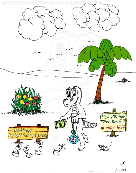 ...so nennt man die Zeitumstellung (Sommer/Winterzeit) "Saving" bedeutet natürlich auch sparen ... und in der aktuellen Wirtschaftslage sparen wir doch, wo's geht...oder werden wir hier von der "Ducklings' Daylight Saving & Loan" (Bank) nur abgezockt???