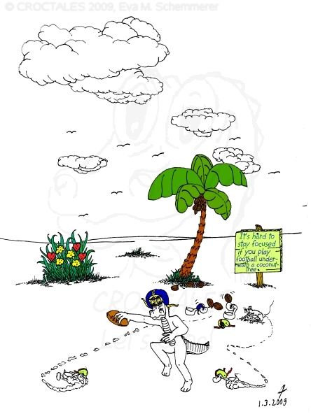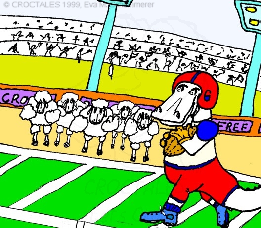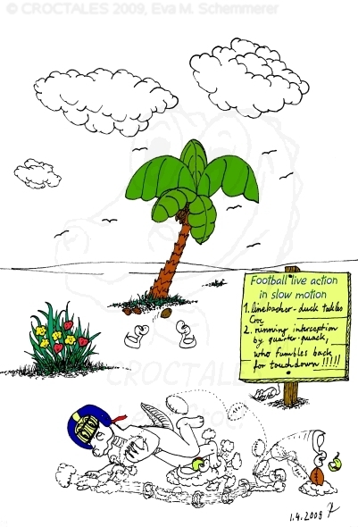 Next: One of the very early CROCTALES pictures - without ducklings and mouse; Croc playing football - cheerleaders included.