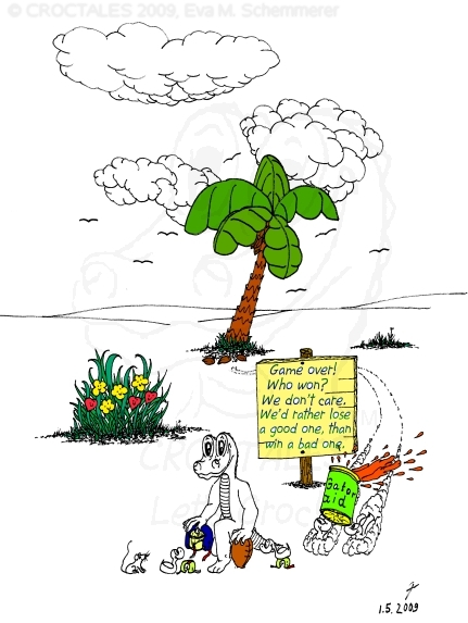 CROCTALES - Let's Croc! Your South-Florida comic for the young and the young at heart. Starring: CROC the alligator, four little orphan ducks and the Cookie-Mouse, of course with lots of guests and visitors; snowbirds included. With CROC philosophy & advice including our own version of online banking and daylight saving, our personal donut & diet site, a new learning site for kids and a new book "ABC learn the CROCTALES alphabet", our EconCOMICAL task force, the LITTLE GREEN PLANET series, a trip around the world, Florida snap shots, croc history & evolution, funny weather reports, lots of duck talk, classifieds & jobs, a wild goose/duck chase, sports & events including GOLFING, the Super Bowl and much, much more. Croc's story & adventures. Cartoon ducks in action. The shy Cookie-Mouse learning something new, not just English and new words but interesting facts about Italy, Florida, the FL state fruit: orange and how kids can make a difference. Croc's comic archives, ducks can('t) spell - go figure, word games, reading between the lines, a little Italian and German and even Chinese. Have fun! THANK YOU for stopping by- Let's Croc!CROCTALES - Lets Croc - DAS Florida Comic für junge und jung gebliebene, mit einem Alligator namens Croc, vier frechen Enten und der schüchternen Cookie-Maus. VIEL SPASS bei unserer Version von Online-Banking, der EconComical Task Force, der neuen CROCTALES for KIDS Lernseite, der Serie über unseren kleinen grünen Planeten - our little green planet - mit Raumfahrt Comics und einer Lösung für die Probleme mit dem WC in der ISS, Astrologie, neue Sternbilder, unsere nicht ganz ernst zu nehmenden Diät Vorschläge, CROCTALES Geschichte & Evolution, Florida Wetter, Hurrikane und Tornados, Kummerkasten und Ratschläge der etwas anderen Art, Sport & Events, Spaß für Golfer, Football und der Super Bowl, CROC Philosophie und sonstiger Unsinn. VIEL SPASS und LETS CROC!