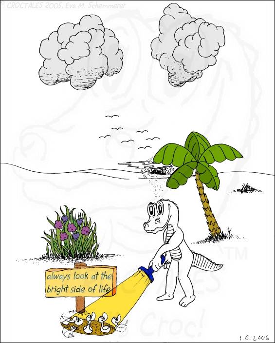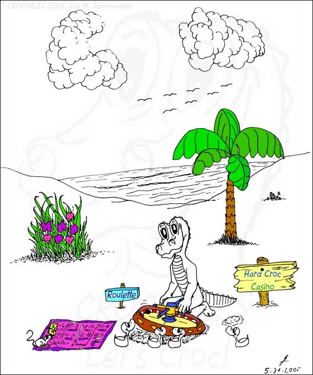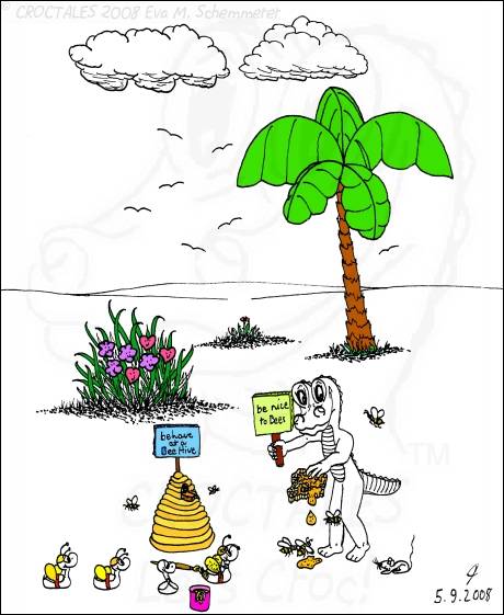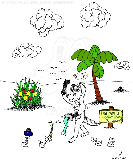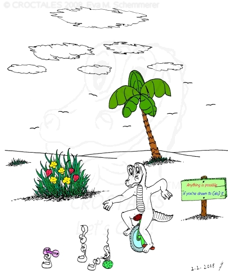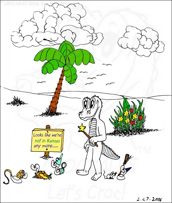 CROCTALES - Let's Croc! Your South-Florida comic for the young and the young at heart. Starring: CROC the alligator, four little orphan ducks and the Cookie-Mouse, of course with lots of guests and visitors; snowbirds included. With CROC philosophy & advice including our own version of online banking and daylight saving, our personal donut & diet site, a new learning site for kids and a new book "ABC learn the CROCTALES alphabet", our EconCOMICAL task force, the LITTLE GREEN PLANET series, a trip around the world, Florida snap shots, croc history & evolution, funny weather reports, lots of duck talk, classifieds & jobs, a wild goose/duck chase, sports & events including GOLFING, the Super Bowl and much, much more. Croc's story & adventures. Cartoon ducks in action. The shy Cookie-Mouse learning something new, not just English and new words but interesting facts about Italy, Florida, the FL state fruit: orange and how kids can make a difference. Croc's comic archives, ducks can('t) spell - go figure, word games, reading between the lines, a little Italian and German and even Chinese. Have fun! THANK YOU for stopping by- Let's Croc!CROCTALES - Lets Croc - DAS Florida Comic für junge und jung gebliebene, mit einem Alligator namens Croc, vier frechen Enten und der schüchternen Cookie-Maus. VIEL SPASS bei unserer Version von Online-Banking, der EconComical Task Force, der neuen CROCTALES for KIDS Lernseite, der Serie über unseren kleinen grünen Planeten - our little green planet - mit Raumfahrt Comics und einer Lösung für die Probleme mit dem WC in der ISS, Astrologie, neue Sternbilder, unsere nicht ganz ernst zu nehmenden Diät Vorschläge, CROCTALES Geschichte & Evolution, Florida Wetter, Hurrikane und Tornados, Kummerkasten und Ratschläge der etwas anderen Art, Sport & Events, Spaß für Golfer, Football und der Super Bowl, CROC Philosophie und sonstiger Unsinn. VIEL SPASS und LETS CROC!