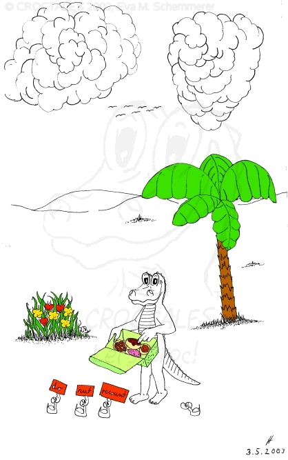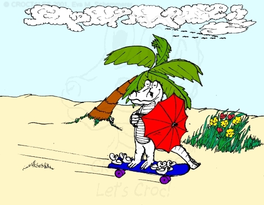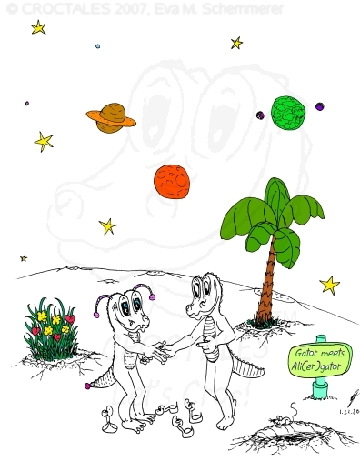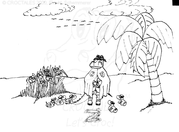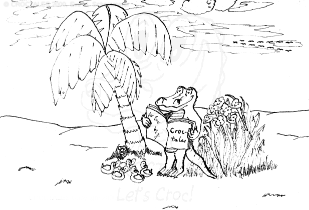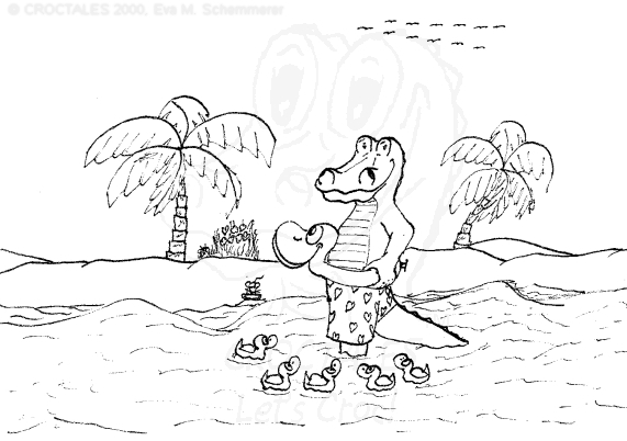 CROCTALES - Let's Croc! Your South-Florida comic for the young and the young at heart. Starring: CROC the alligator, four little orphan ducks and the Cookie-Mouse, of course with lots of guests and visitors; snowbirds included. With CROC philosophy & advice including our own version of online banking and daylight saving, our personal donut & diet site, a new learning site for kids and a new book "ABC learn the CROCTALES alphabet", our EconCOMICAL task force, the LITTLE GREEN PLANET series, a trip around the world, Florida snap shots, croc history & evolution, funny weather reports, lots of duck talk, classifieds & jobs, a wild goose/duck chase, sports & events including GOLFING, the Super Bowl and much, much more. Croc's story & adventures. Cartoon ducks in action. The shy Cookie-Mouse learning something new, not just English and new words but interesting facts about Italy, Florida, the FL state fruit: orange and how kids can make a difference. Croc's comic archives, ducks can('t) spell - go figure, word games, reading between the lines, a little Italian and German and even Chinese. Have fun! THANK YOU for stopping by- Let's Croc!CROCTALES - Lets Croc - DAS Florida Comic für junge und jung gebliebene, mit einem Alligator namens Croc, vier frechen Enten und der schüchternen Cookie-Maus. VIEL SPASS bei unserer Version von Online-Banking, der EconComical Task Force, der neuen CROCTALES for KIDS Lernseite, der Serie über unseren kleinen grünen Planeten - our little green planet - mit Raumfahrt Comics und einer Lösung für die Probleme mit dem WC in der ISS, Astrologie, neue Sternbilder, unsere nicht ganz ernst zu nehmenden Diät Vorschläge, CROCTALES Geschichte & Evolution, Florida Wetter, Hurrikane und Tornados, Kummerkasten und Ratschläge der etwas anderen Art, Sport & Events, Spaß für Golfer, Football und der Super Bowl, CROC Philosophie und sonstiger Unsinn. VIEL SPASS und LETS CROC!