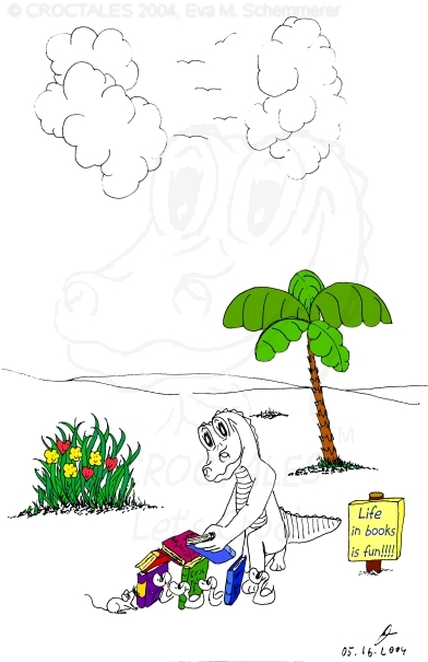 CROCTALES - Let's Croc! Your South-Florida comic for the young and the young at heart. Starring: CROC the alligator, four little orphan ducks and the Cookie-Mouse, of course with lots of guests and visitors; snowbirds included. With CROC philosophy & advice including our own version of online banking and daylight saving, our personal donut & diet site, a new learning site for kids and a new book "ABC learn the CROCTALES alphabet", our EconCOMICAL task force, the LITTLE GREEN PLANET series, a trip around the world, Florida snap shots, croc history & evolution, funny weather reports, lots of duck talk, classifieds & jobs, a wild goose/duck chase, sports & events including GOLFING, the Super Bowl and much, much more. Croc's story & adventures. Cartoon ducks in action. The shy Cookie-Mouse learning something new, not just English and new words but interesting facts about Italy, Florida, the FL state fruit: orange and how kids can make a difference. Croc's comic archives, ducks can('t) spell - go figure, word games, reading between the lines, a little Italian and German and even Chinese. Have fun! THANK YOU for stopping by- Let's Croc!CROCTALES - Lets Croc - DAS Florida Comic für junge und jung gebliebene, mit einem Alligator namens Croc, vier frechen Enten und der schüchternen Cookie-Maus. VIEL SPASS bei unserer Version von Online-Banking, der EconComical Task Force, der neuen CROCTALES for KIDS Lernseite, der Serie über unseren kleinen grünen Planeten - our little green planet - mit Raumfahrt Comics und einer Lösung für die Probleme mit dem WC in der ISS, Astrologie, neue Sternbilder, unsere nicht ganz ernst zu nehmenden Diät Vorschläge, CROCTALES Geschichte & Evolution, Florida Wetter, Hurrikane und Tornados, Kummerkasten und Ratschläge der etwas anderen Art, Sport & Events, Spaß für Golfer, Football und der Super Bowl, CROC Philosophie und sonstiger Unsinn. VIEL SPASS und LETS CROC!