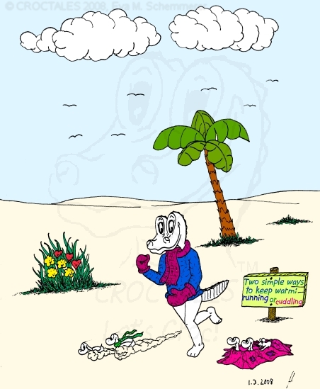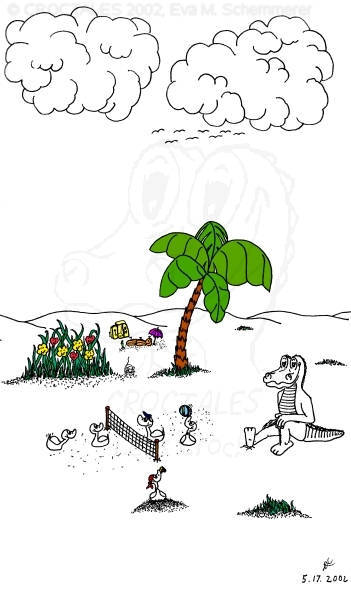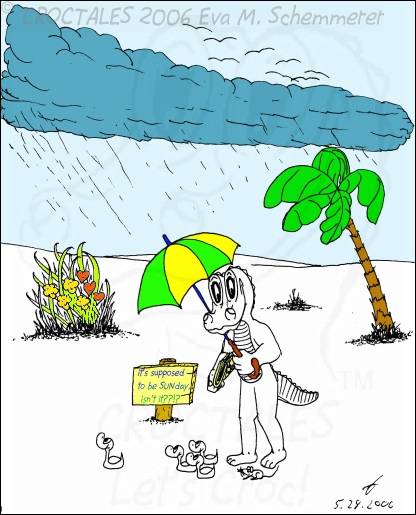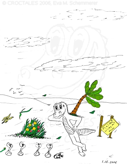 CROCTALES - Let's Croc! Your South-Florida comic for the young and the young at heart. Starring: CROC the alligator, four little orphan ducks and the Cookie-Mouse, of course with lots of guests and visitors; snowbirds included. With CROC philosophy & advice including our own version of online banking and daylight saving, our personal donut & diet site, a new learning site for kids and a new book "ABC learn the CROCTALES alphabet", our EconCOMICAL task force, the LITTLE GREEN PLANET series, a trip around the world, Florida snap shots, croc history & evolution, funny weather reports, lots of duck talk, classifieds & jobs, a wild goose/duck chase, sports & events including GOLFING, the Super Bowl and much, much more. Croc's story & adventures. Cartoon ducks in action. The shy Cookie-Mouse learning something new, not just English and new words but interesting facts about Italy, Florida, the FL state fruit: orange and how kids can make a difference. Croc's comic archives, ducks can('t) spell - go figure, word games, reading between the lines, a little Italian and German and even Chinese. Have fun! THANK YOU for stopping by- Let's Croc!CROCTALES - Lets Croc - DAS Florida Comic für junge und jung gebliebene, mit einem Alligator namens Croc, vier frechen Enten und der schüchternen Cookie-Maus. VIEL SPASS bei unserer Version von Online-Banking, der EconComical Task Force, der neuen CROCTALES for KIDS Lernseite, der Serie über unseren kleinen grünen Planeten - our little green planet - mit Raumfahrt Comics und einer Lösung für die Probleme mit dem WC in der ISS, Astrologie, neue Sternbilder, unsere nicht ganz ernst zu nehmenden Diät Vorschläge, CROCTALES Geschichte & Evolution, Florida Wetter, Hurrikane und Tornados, Kummerkasten und Ratschläge der etwas anderen Art, Sport & Events, Spaß für Golfer, Football und der Super Bowl, CROC Philosophie und sonstiger Unsinn. VIEL SPASS und LETS CROC!